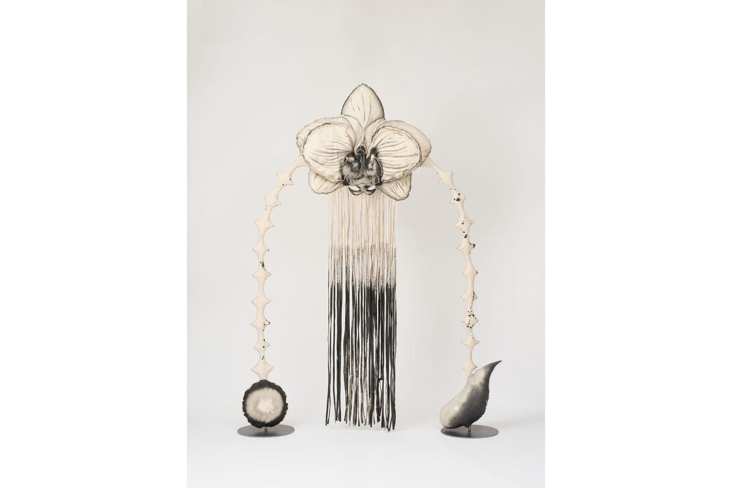 Meok on cotton fabric, thread, cotton stuffing, stainless steel frame